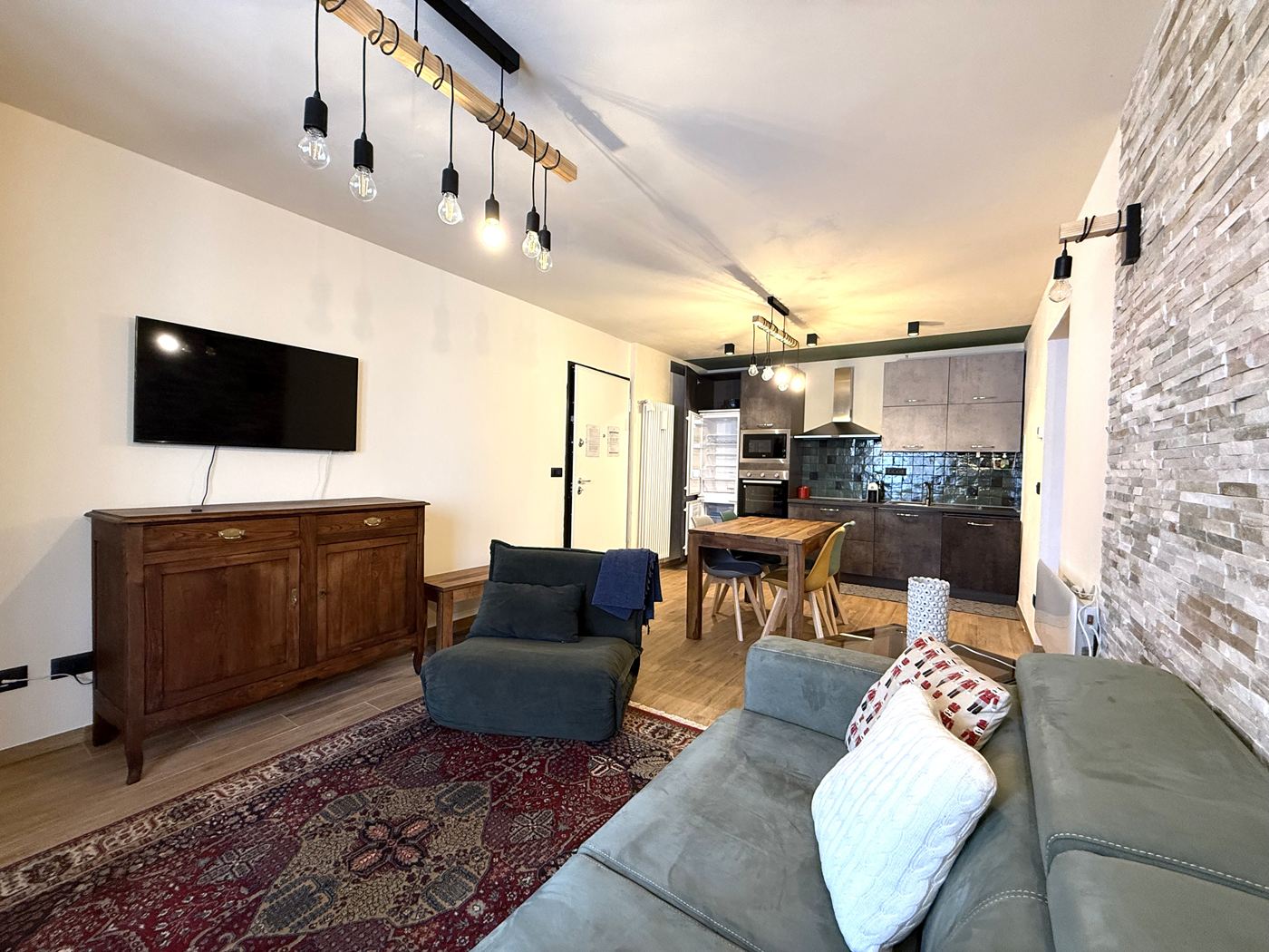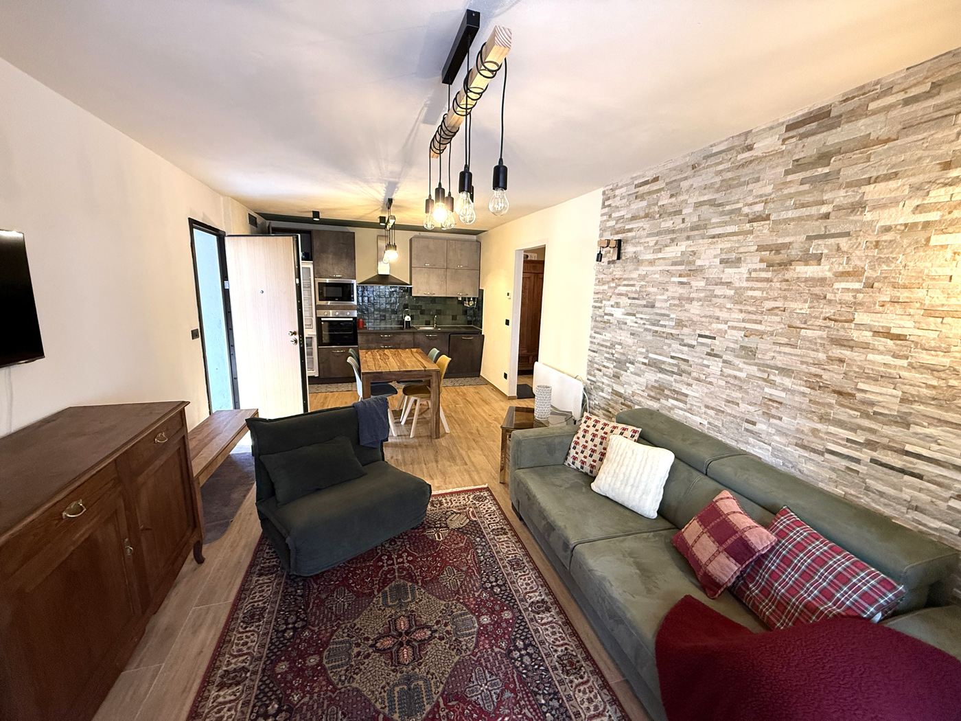 LA CASA NEL BOSCO - Un bellissimo e ampio Bilocale, comodo al centro commerciale e alle piste da sci, perfettamente ristrutturato con materiali di pregio, ingresso indipendente su un grande soggiorno con angolo cottura completo di tutto, grande disimpegno che porta nella zona notte dove troviamo un magnifico bagno doccia e una bella camera matrimoniale con vista sul bosco, immerso nella natura. L'appartamento é pari al nuovo, viene venduto completamente arredato. Se avete un sogno... dategli una casa!